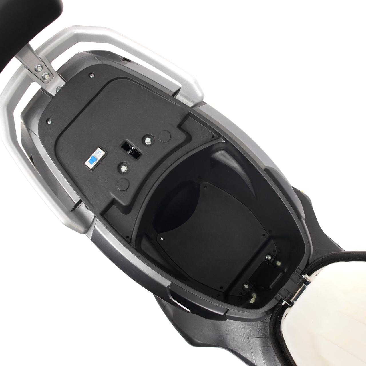 Balanced performance scooter with 60km/h speed, 90km range, and 180kg load capacity.